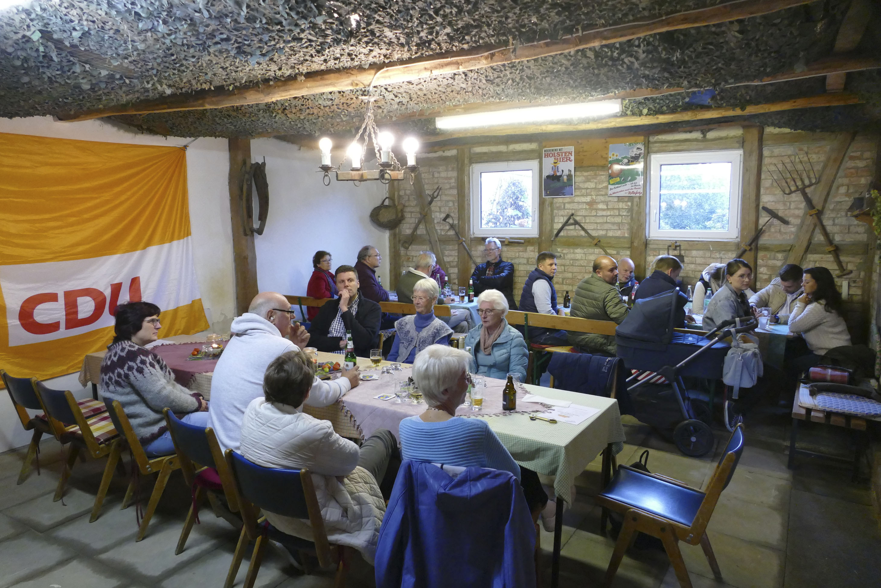 Wie auch in den vergangenen Jahres lud der CDU-Ortsverband Cremlingen wieder zu seinem geselligen Frühherbst-Abend in die Scheune Weber ein. Die Tische waren stimmungsvoll gedeckt, ein leckerer Krustenbraten mit Kraut wurde angeliefert und zum Trinken gab es auch genug.